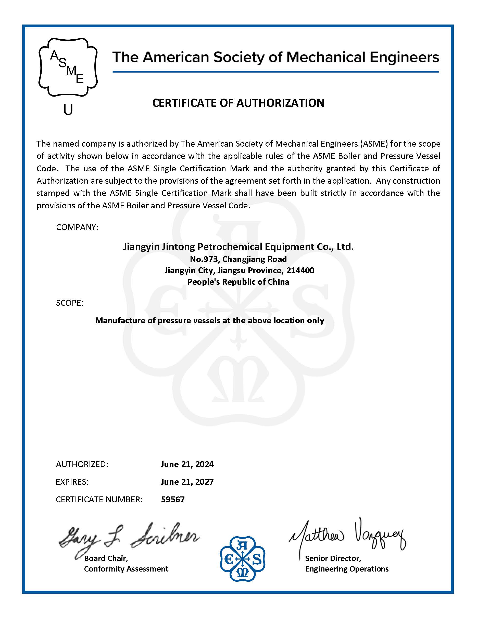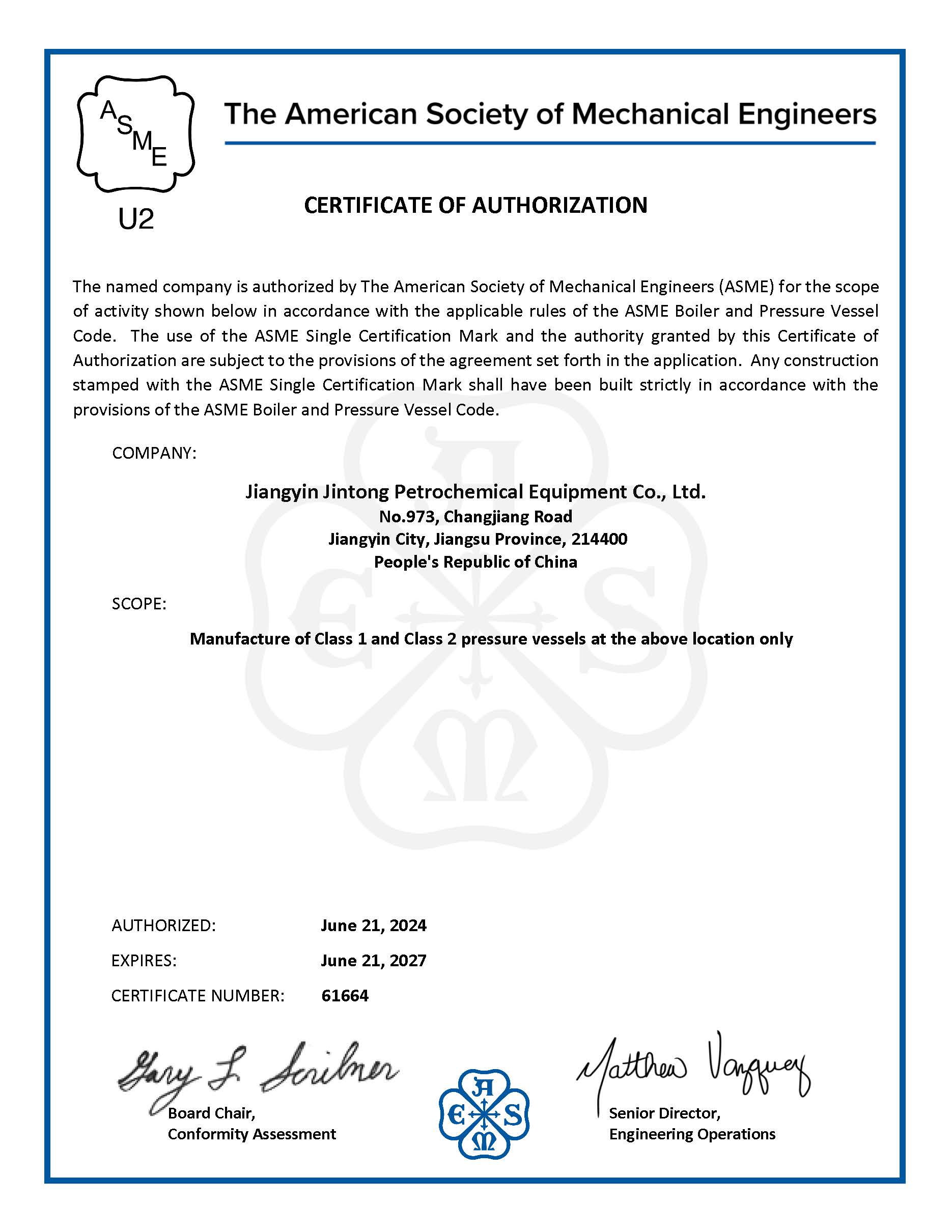 The enterprise credit rating is AAA, which is a national high-tech enterprise in Jiangsu Province. Since 1996, the company began to establish a quality management system according to ISO9000 requirements, and obtained the quality management system certification in 1998. And has A1, A2 special equipment pressure vessel design, manufacturing license qualifications for large high-pressure vessel A1 and ultra-high pressure vessel A6, pressure pipeline components A, B, metal seal AX manufacturing qualification, Jiangsu Province energy-saving heat exchange complete equipment engineering technology research center, Wuxi Metal pipeline fittings engineering Technology Research Center.